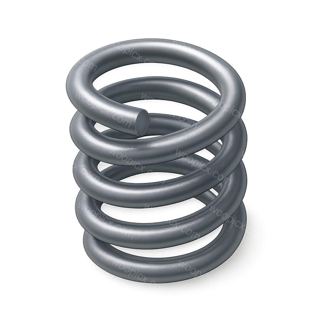 This image features a sleek 3D coiled spring rendered in a metallic finish. The isometric view highlights its smooth curves and volume, set against a subtle gradient background.
