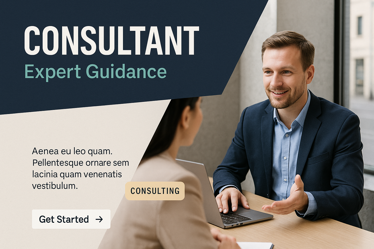 /Collection: /by davooda/Type: PNG/An engaging image of a consultant offering expert guidance. Featuring a professional setting with layered text elements and action buttons, all in a cohesive design.