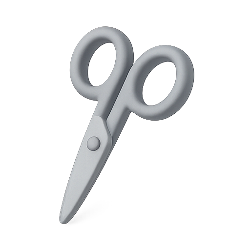 A detailed 3D rendering of gray scissors, showcasing a modern and minimalist design. Suitable for educational materials, DIY projects, or office supplies imagery.