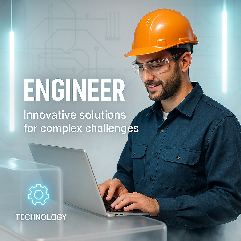 /Collection: /by davooda/Type: PNG/Image of an engineer in a safety helmet and glasses using a laptop, emphasizing technology and innovation. Ideal for showcasing engineering solutions or technology-related content.
