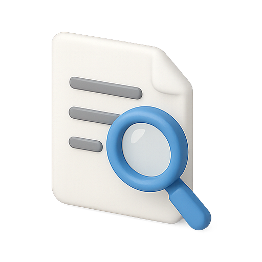 /Collection: /by davooda/Type: PNG/Stylized icon representing a document with a magnifying glass, ideal for applications related to search features, research, or document management. Clean and modern design.