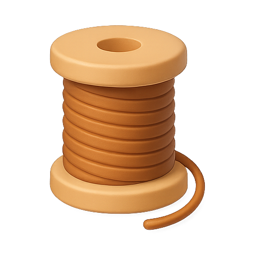A minimalistic graphic representation of a spool of thread with a warm color palette. Ideal for sewing, crafting, or DIY project themes.