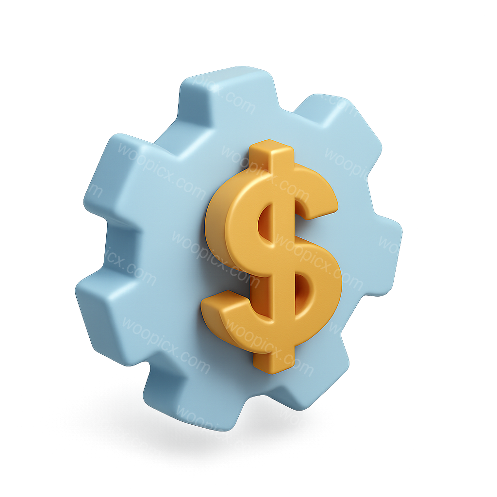 /Premium/Collection: /by davooda/Type: PNG/A three-dimensional gear icon featuring a prominent dollar sign in the center. The gear is light blue, while the dollar sign is a vibrant yellow, creating a striking contrast. The isometric perspective adds depth and a modern feel.