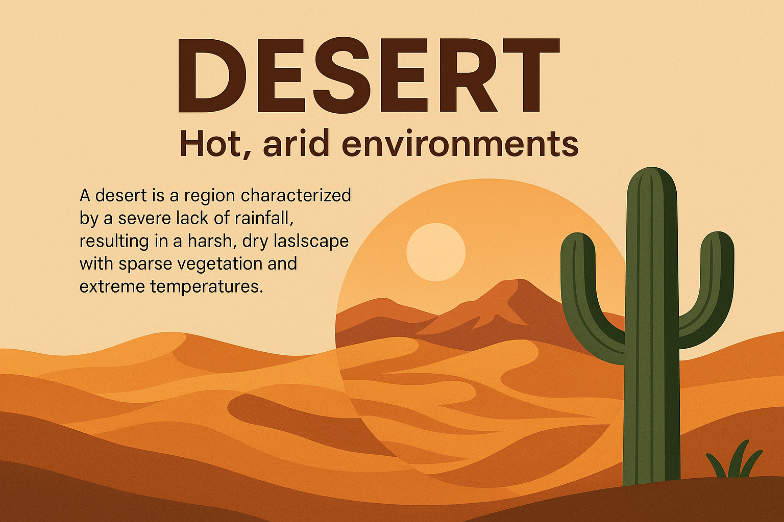/Collection: /by davooda/Type: PNG/This image showcases a stylized desert landscape featuring a prominent cactus, sun, and rolling sand dunes. It highlights the harsh conditions of arid environments.