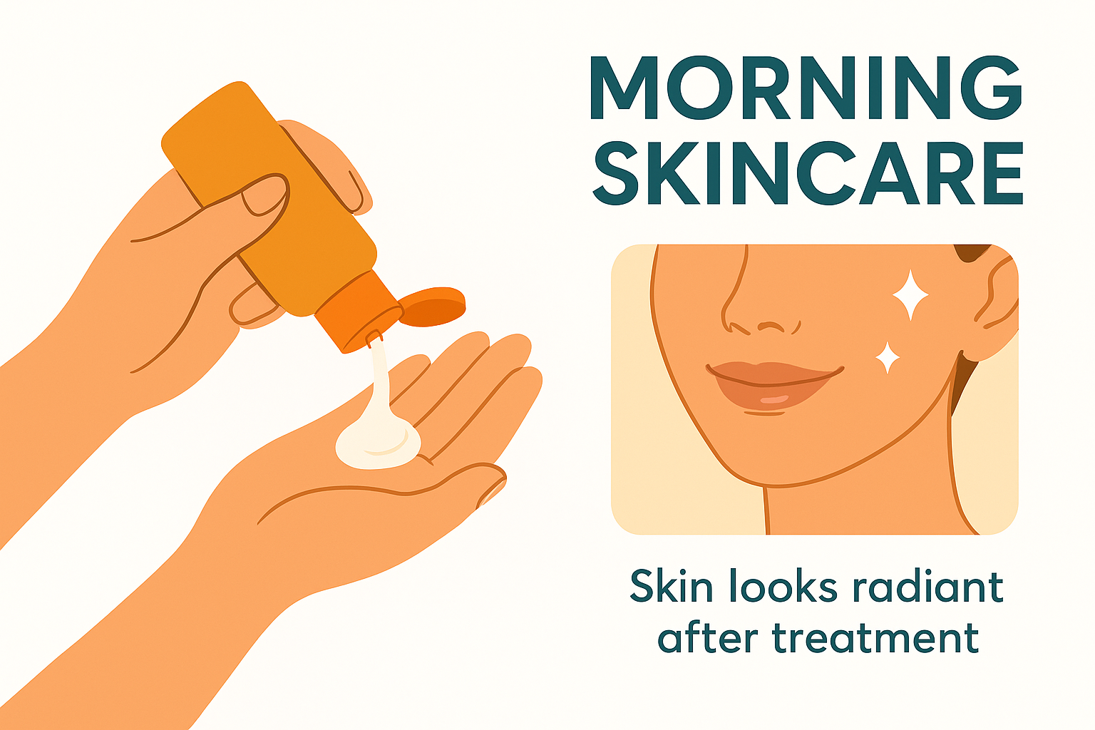 Illustration of Morning Skincare Routine with Glowing Skin Theme