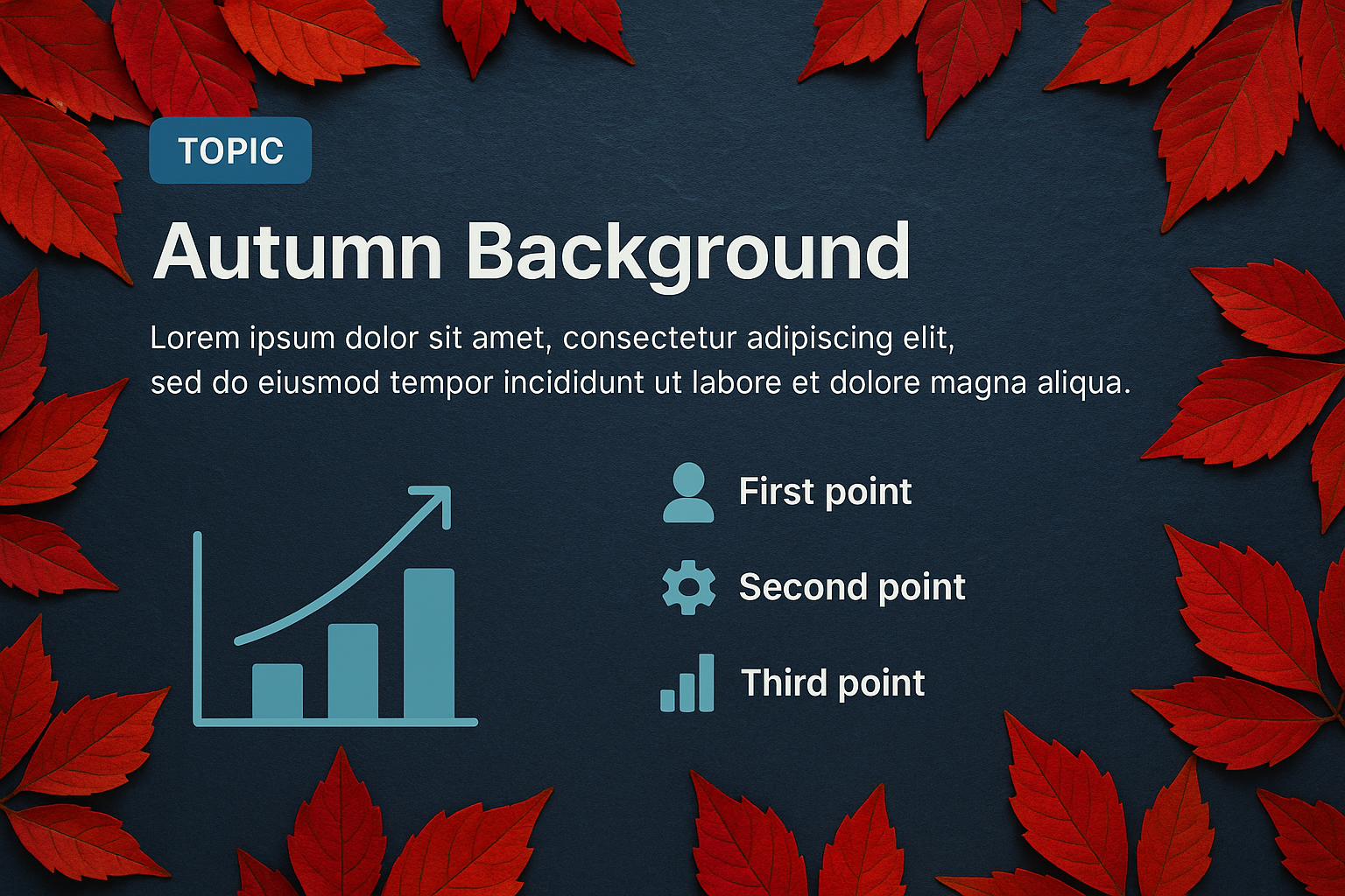 Stylish autumn background featuring vibrant red leaves framing an infographic layout, ideal for presentations, reports, or seasonal marketing materials.