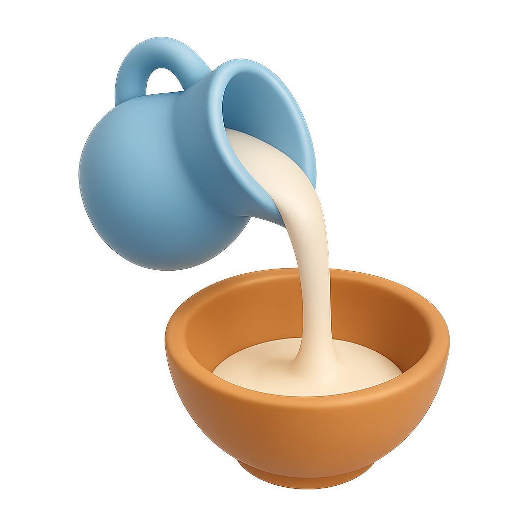 /Collection: /by davooda/Type: PNG/A visually striking 3D icon depicting a blue pitcher pouring liquid into a brown bowl. The design features a three-quarter view with a smooth volumetric appearance against a gradient background.