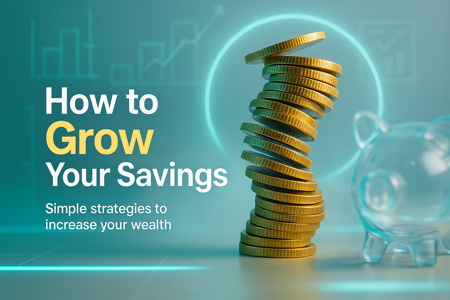 /Collection: /by davooda/Type: PNG/A modern financial infographic featuring a stack of coins beside a piggy bank, illustrating strategies to grow savings. Ideal for personal finance content and educational materials.