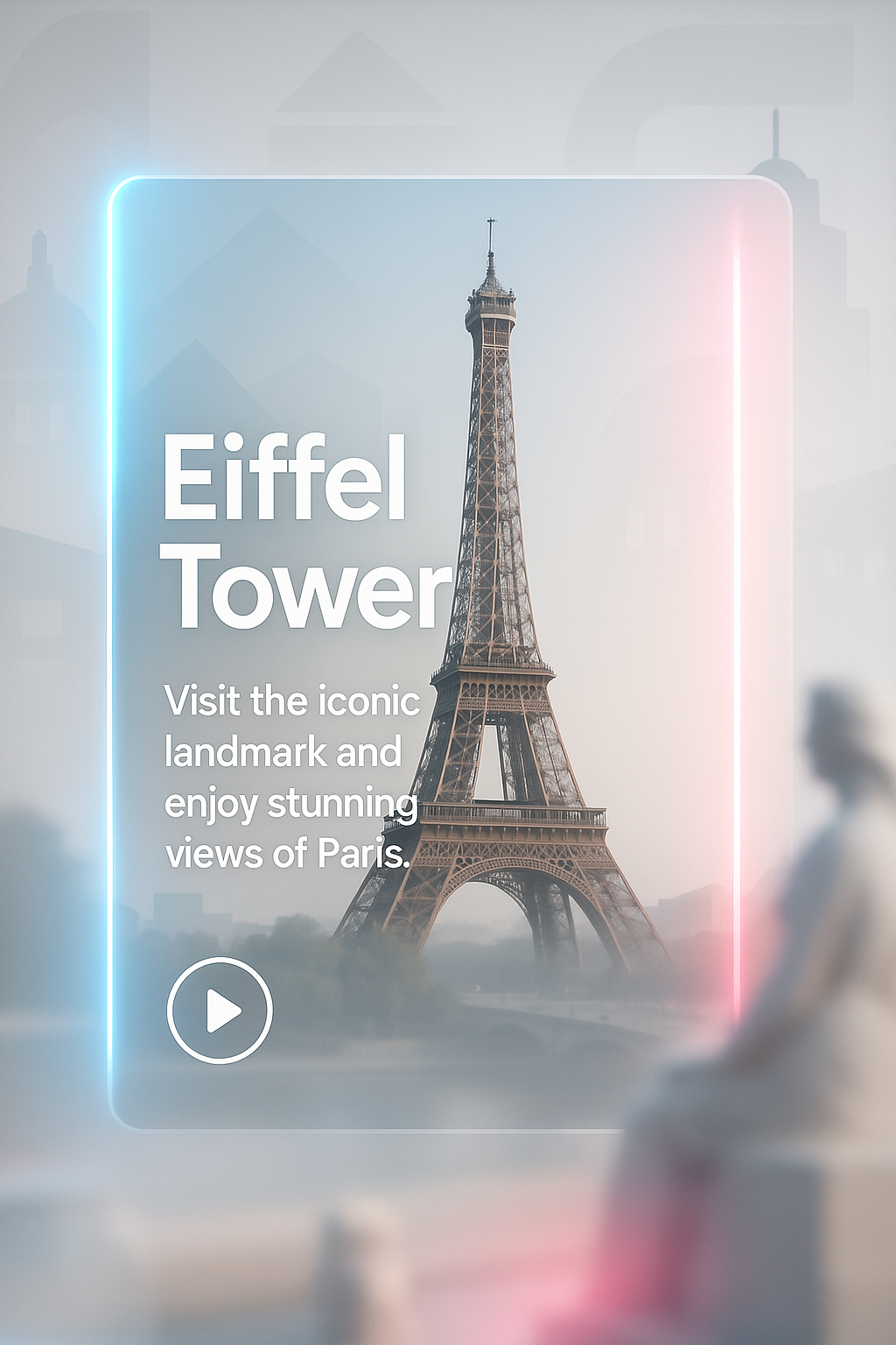 Stylish promotional graphic showcasing the Eiffel Tower, designed to entice viewers to explore the landmark with modern design elements, perfect for tourism marketing.