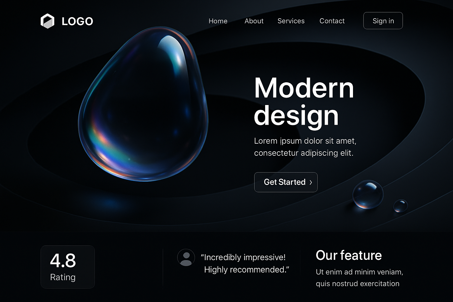 Modern Landing Page Design with Bold Typography and 3D Elements
