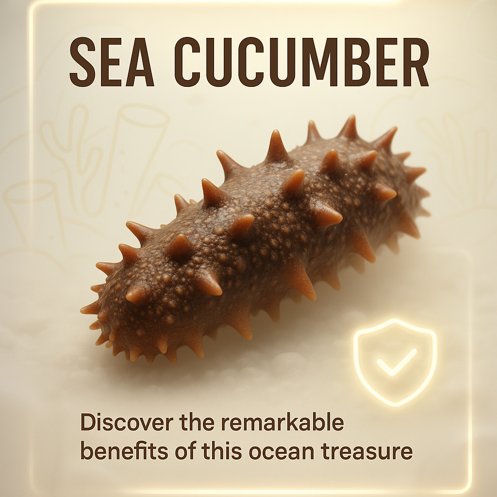 /Collection: /by davooda/Type: PNG/A visually appealing carousel slide featuring a sea cucumber. Highlights benefits with layered design, neon accents, and balanced text placement for effective marketing.