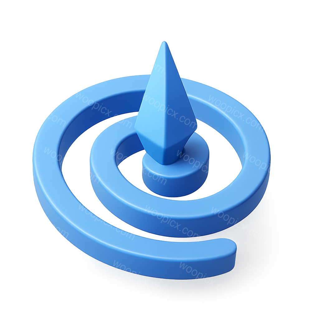 A vibrant blue 3D spiral design featuring a central spike, rendered in an isometric view. The icon showcases a smooth, glossy finish against a gradient background, emphasizing its volumetric qualities.