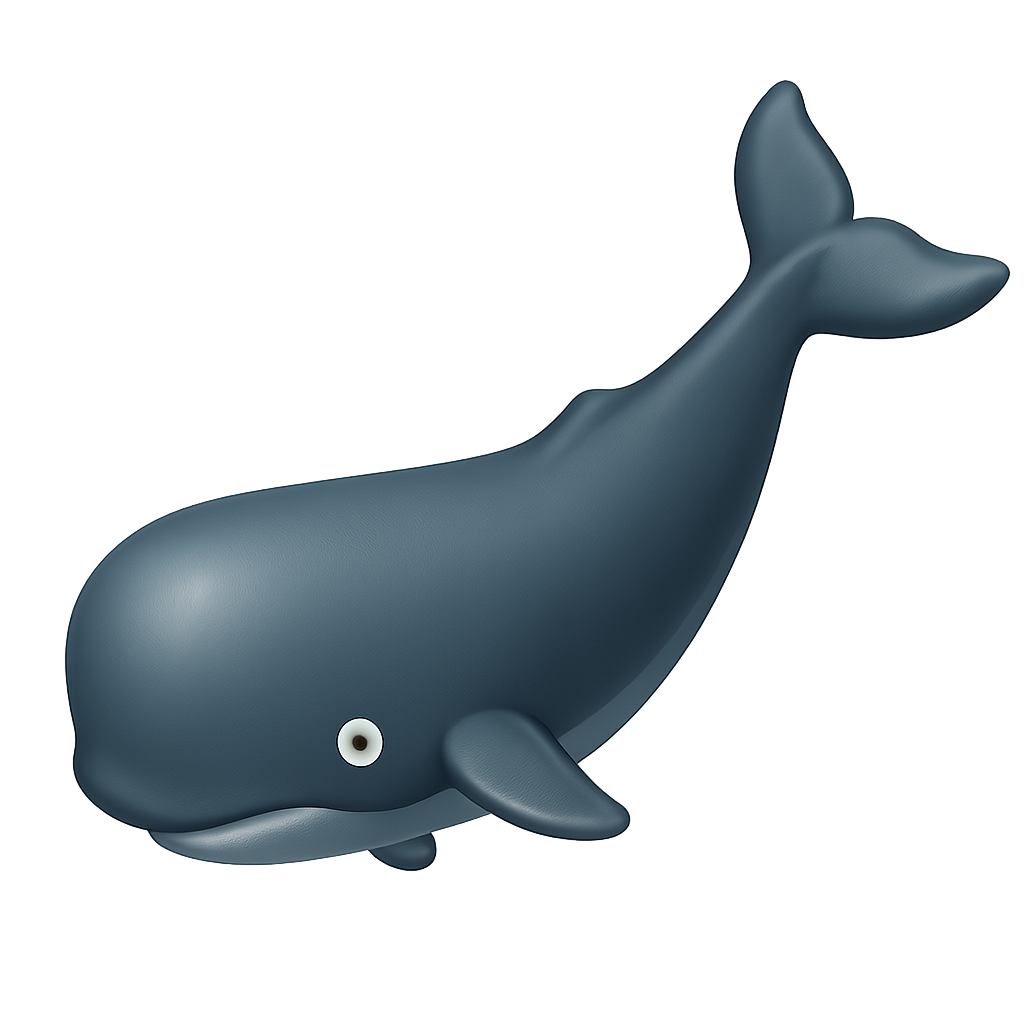 Stylized 3D Blue Whale Icon with Isometric View