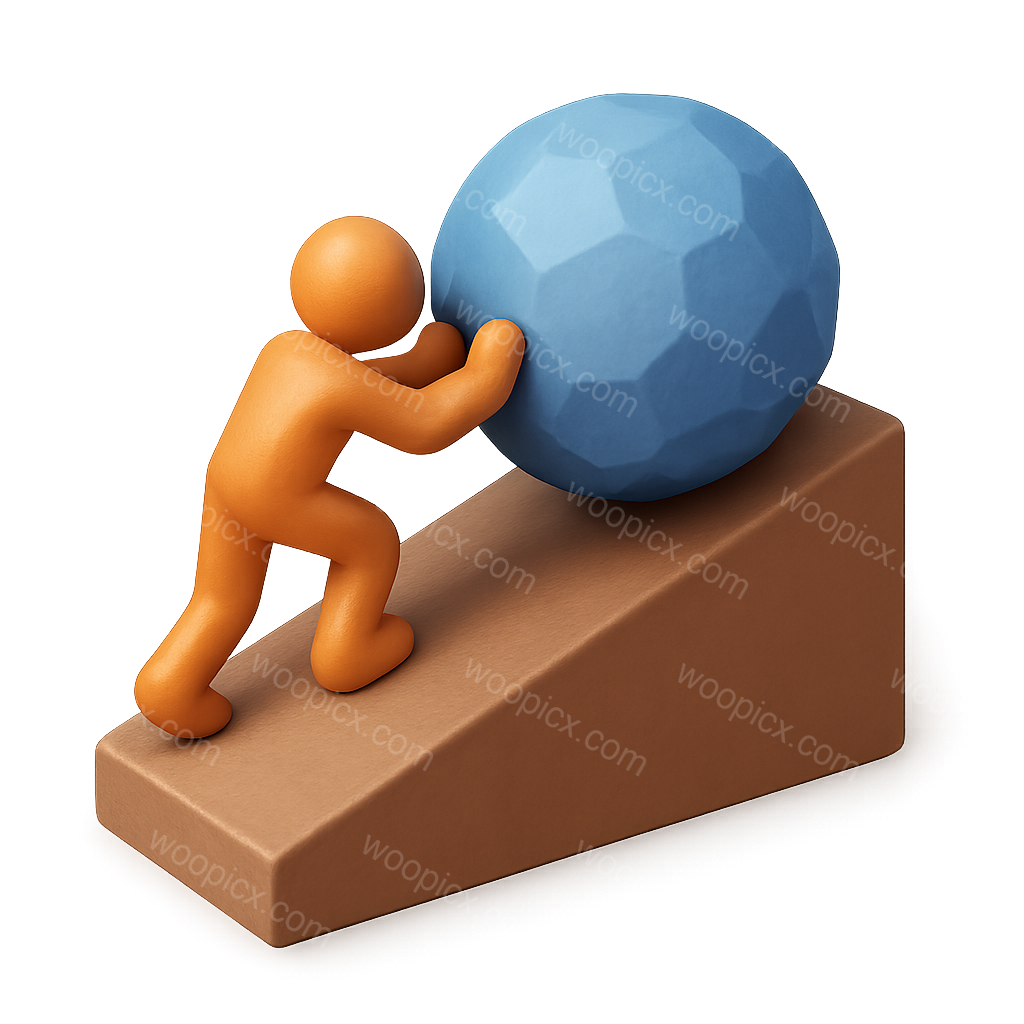 /Premium/Collection: /by davooda/Type: PNG/A 3D icon illustrating the concept of persistence, featuring an orange figure pushing a blue geometric shape on a brown base. The design emphasizes depth and isometric perspective.