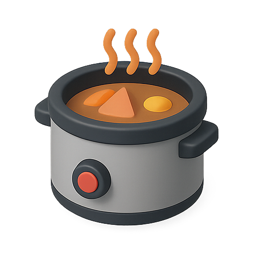 /Collection: /by davooda/Type: PNG/A 3D illustration of a slow cooker with food elements, featuring a modern and playful design. Ideal for cooking blogs, recipe websites, or kitchen-related content.