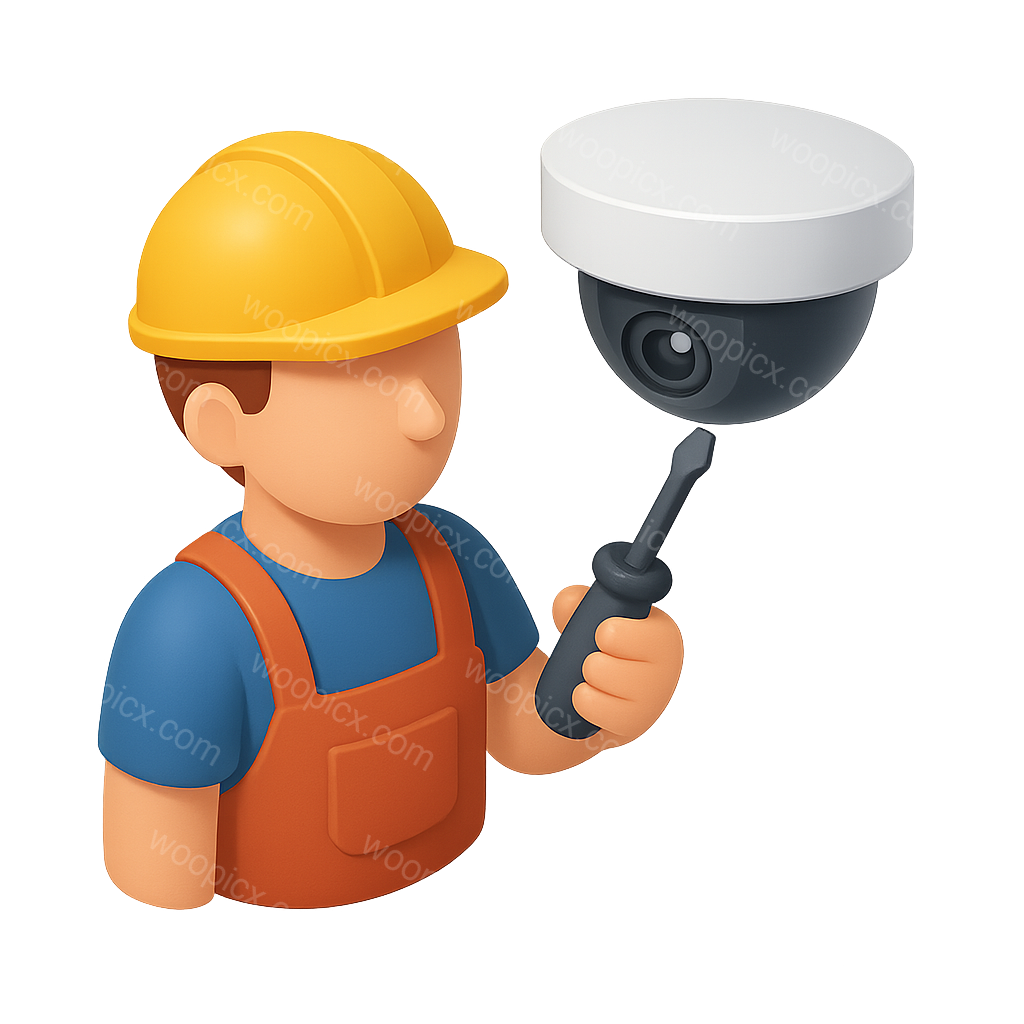 3D Security Camera Icon with Installer Representation