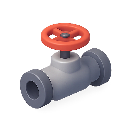 A detailed 3D rendering of a valve featuring a red handle, designed for industrial or engineering contexts. This graphic can be used in technical documentation or educational materials.