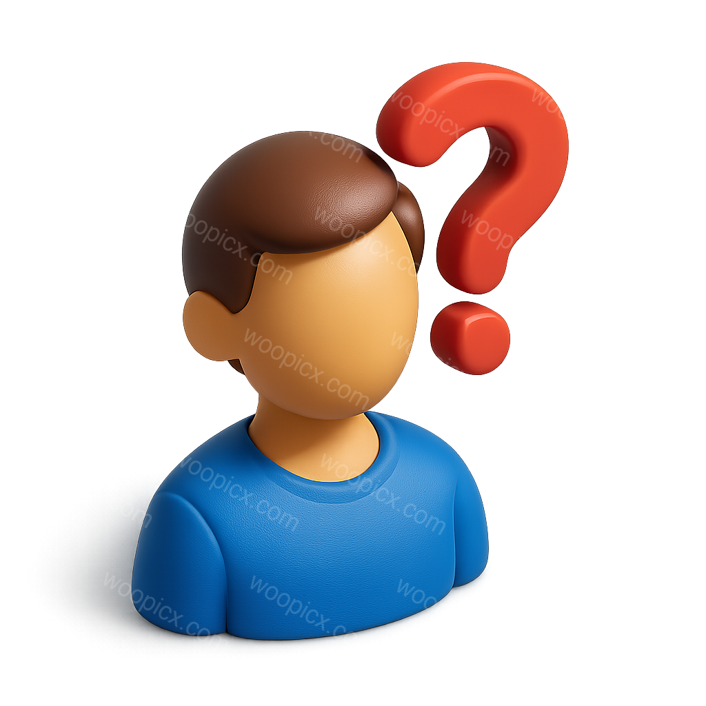 A 3D icon featuring a stylized person with a question mark hovering above. The design utilizes a transparent background and showcases a three-quarter view, emphasizing a volumetric and isometric style.