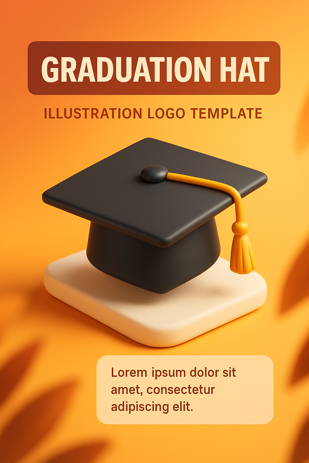 This image features a 3D illustration of a graduation hat on a simple platform, ideal for use in educational branding or event promotions.