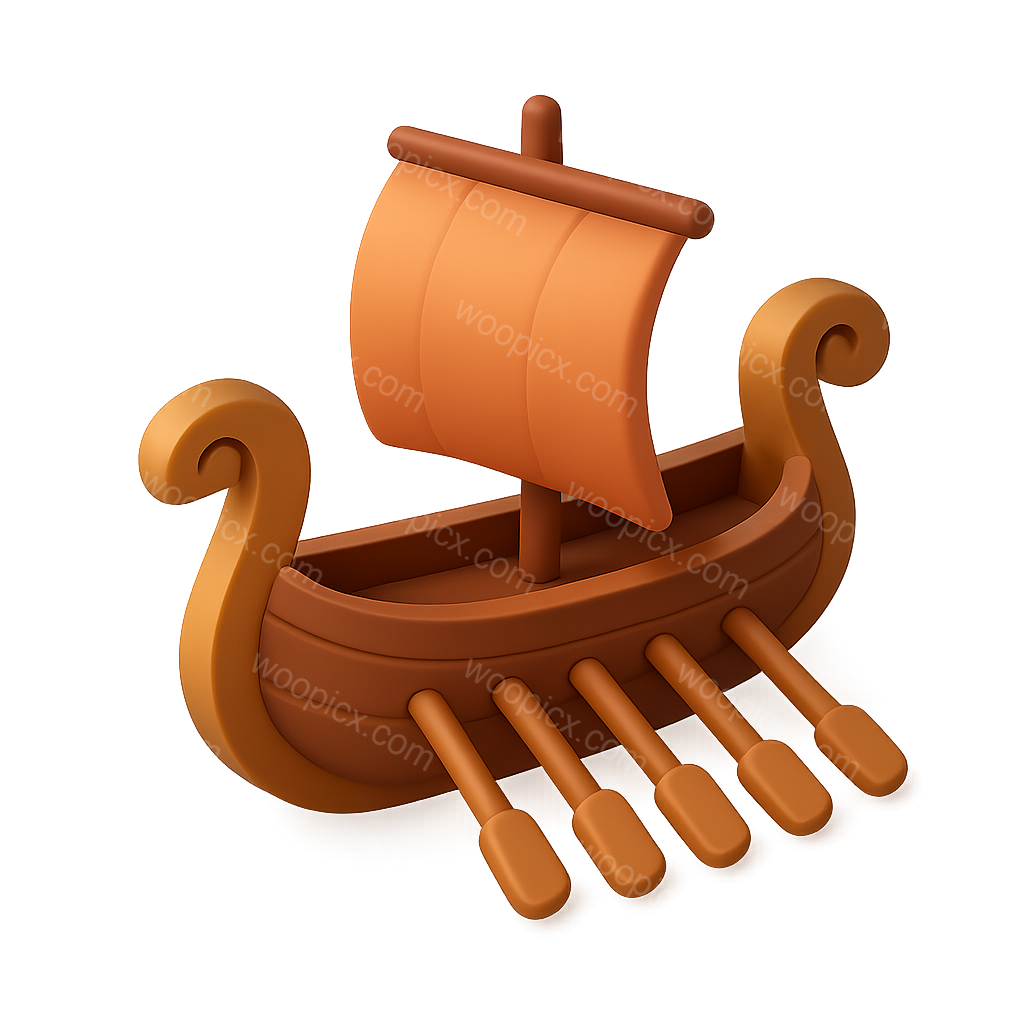 Stylized 3D Viking Longship Icon in Isometric View