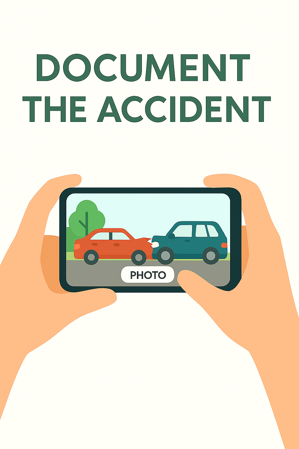 /Collection: /by davooda/Type: PNG/A graphic illustration showing hands holding a smartphone capturing a car accident scene, designed for educational or informative purposes related to accident reporting.