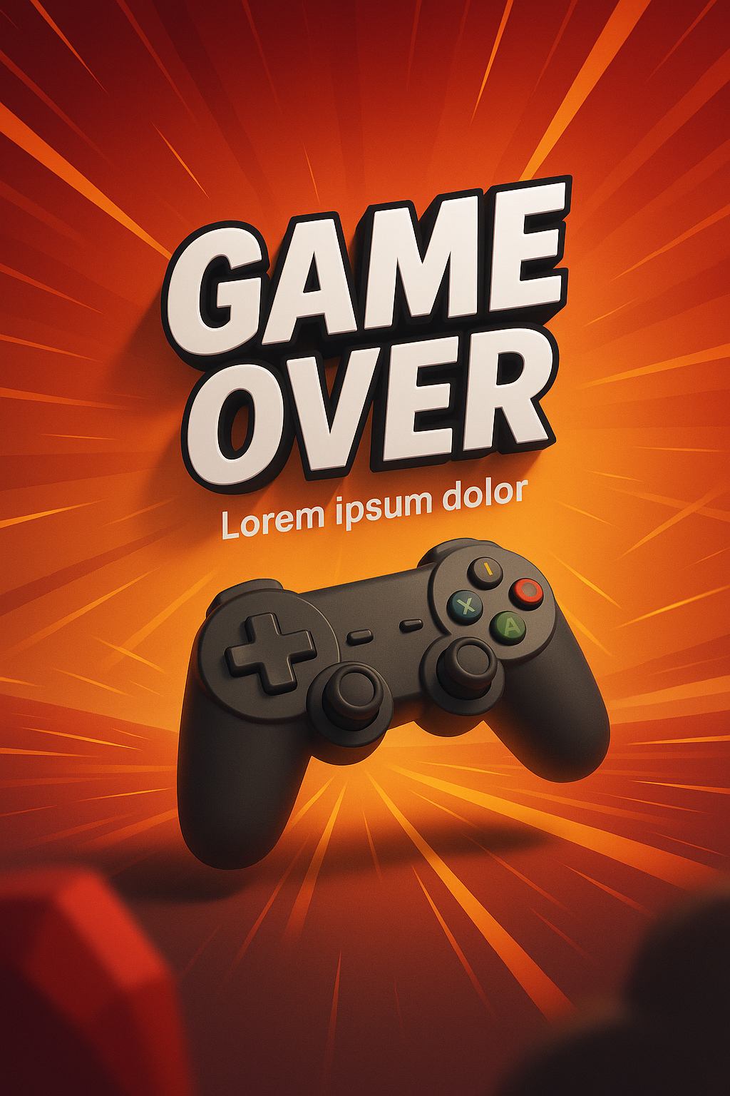 This vibrant digital artwork features a 'Game Over' theme with a gaming controller. Ideal for gaming-related content, it combines bold typography and a striking color palette.