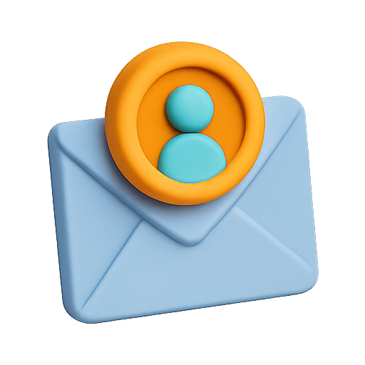 Stylized 3D illustration of an email envelope with a user profile symbol, perfect for digital communication themes in tech and social media applications.