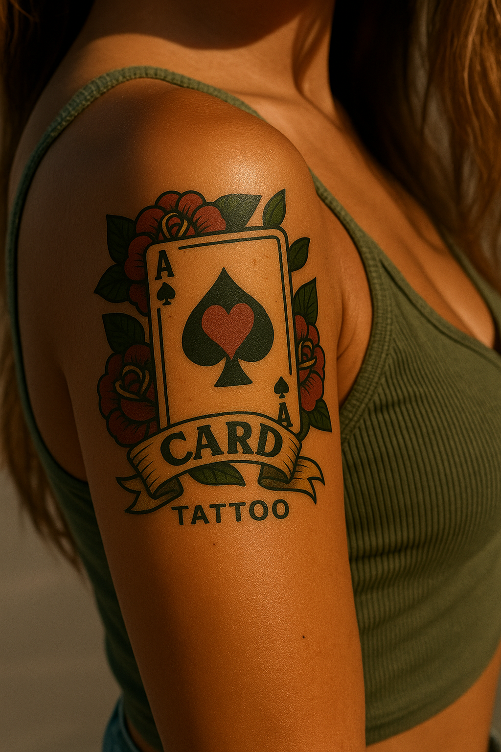 Illustrative Tattoo Art Featuring a Woman with Playing Cards