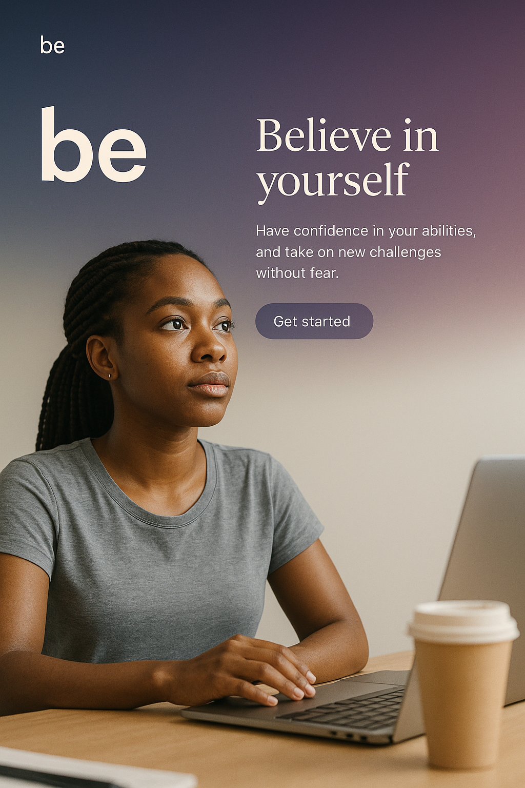 A modern web page design featuring a user engaged with a laptop, displaying motivational text and a call-to-action button. The background has a gradient effect.