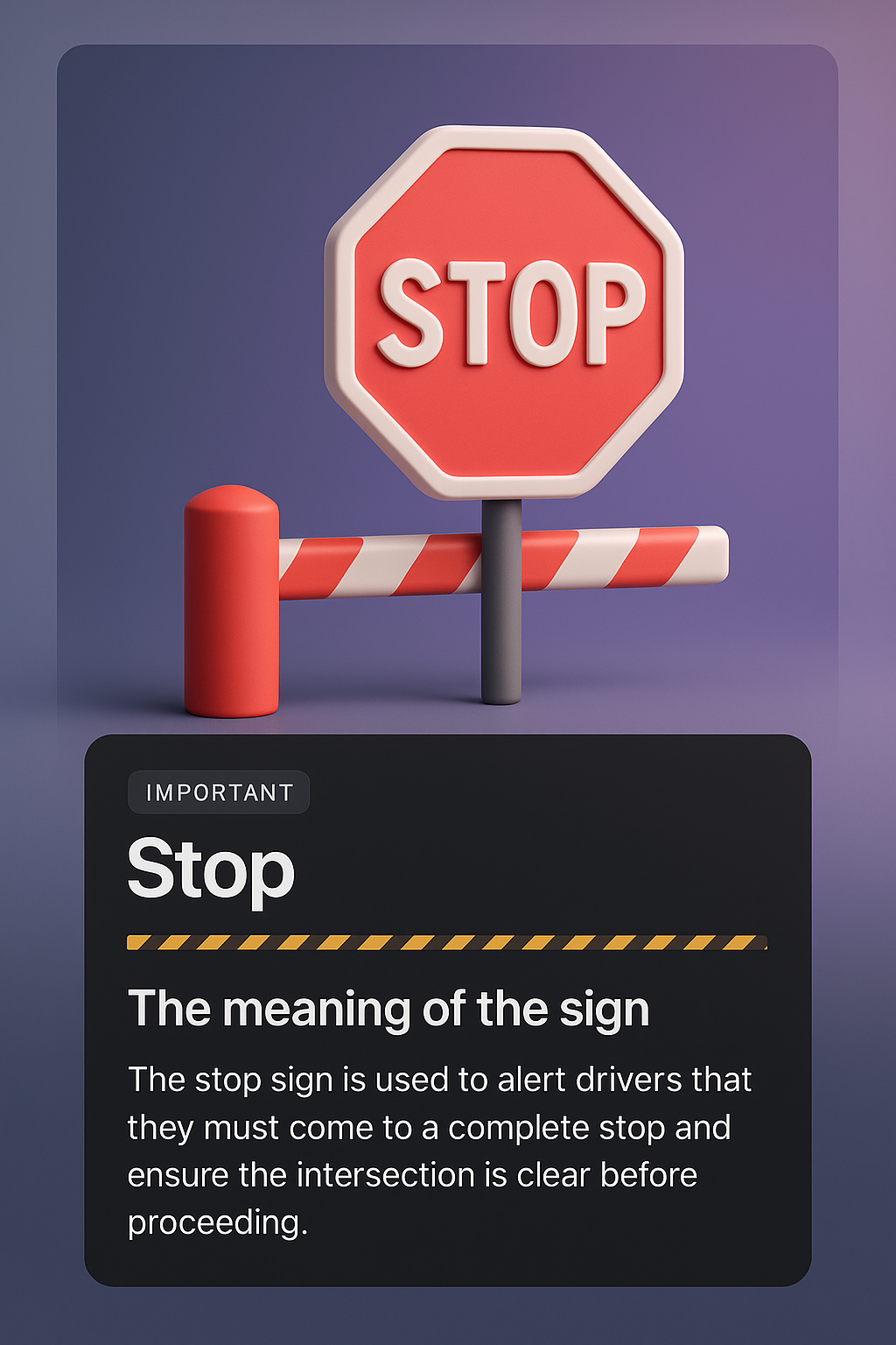 A visually engaging 3D illustration of a stop sign integrated with a dark informational block. The design includes smooth gradients and realistic details.