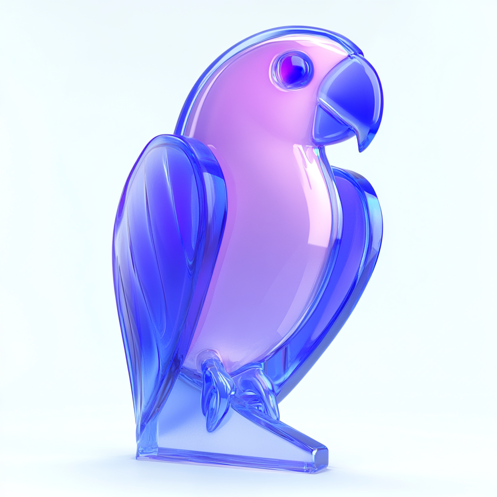 A striking 3D sculpture of a parrot, designed with smooth lines and vibrant pink and blue colors. This modern art piece is suitable for decor, branding, or artistic showcases.