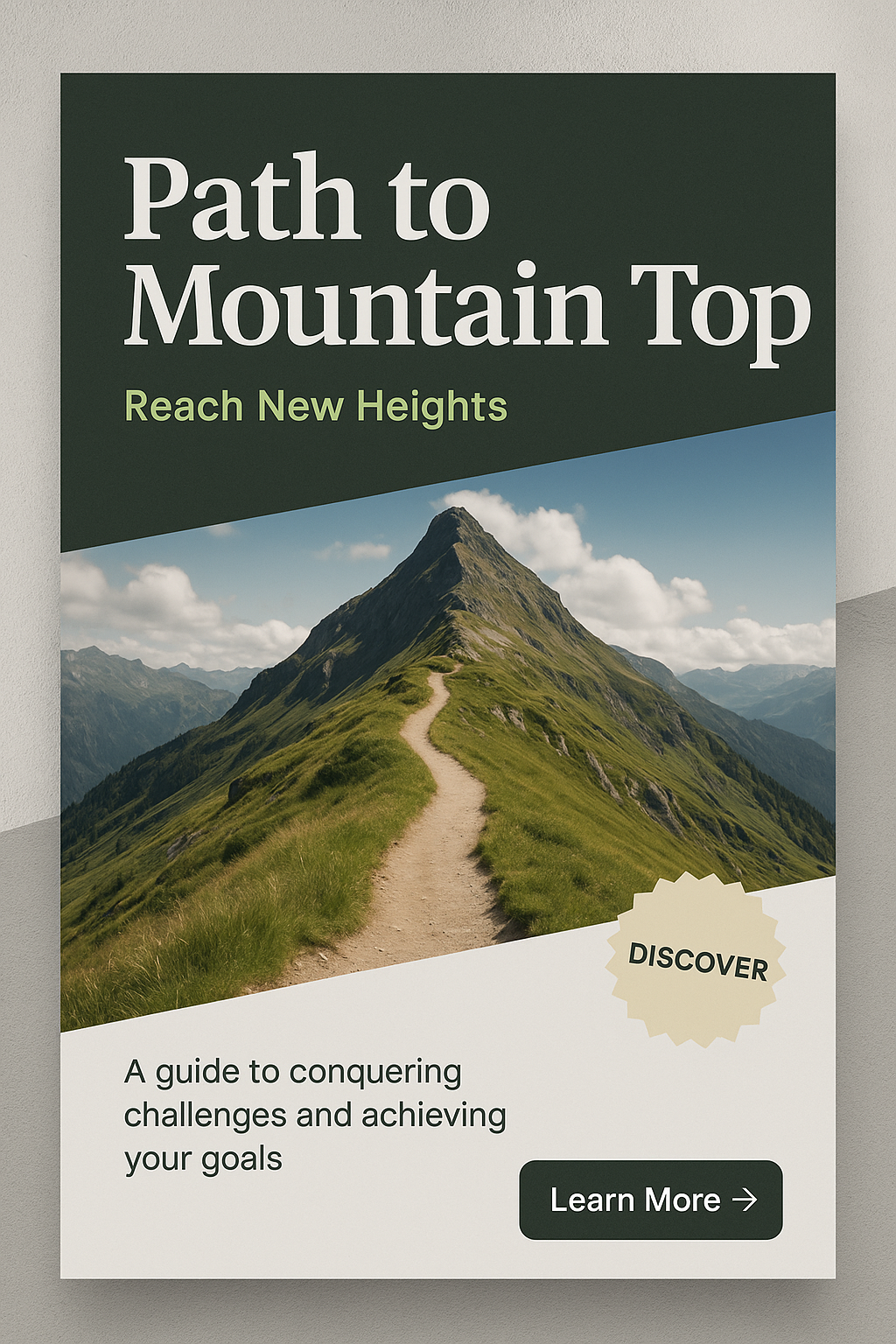 An illustrated guide featuring a scenic path leading to a mountain top. The design showcases a layered composition with a realistic aesthetic, contrasting colors, and engaging elements.