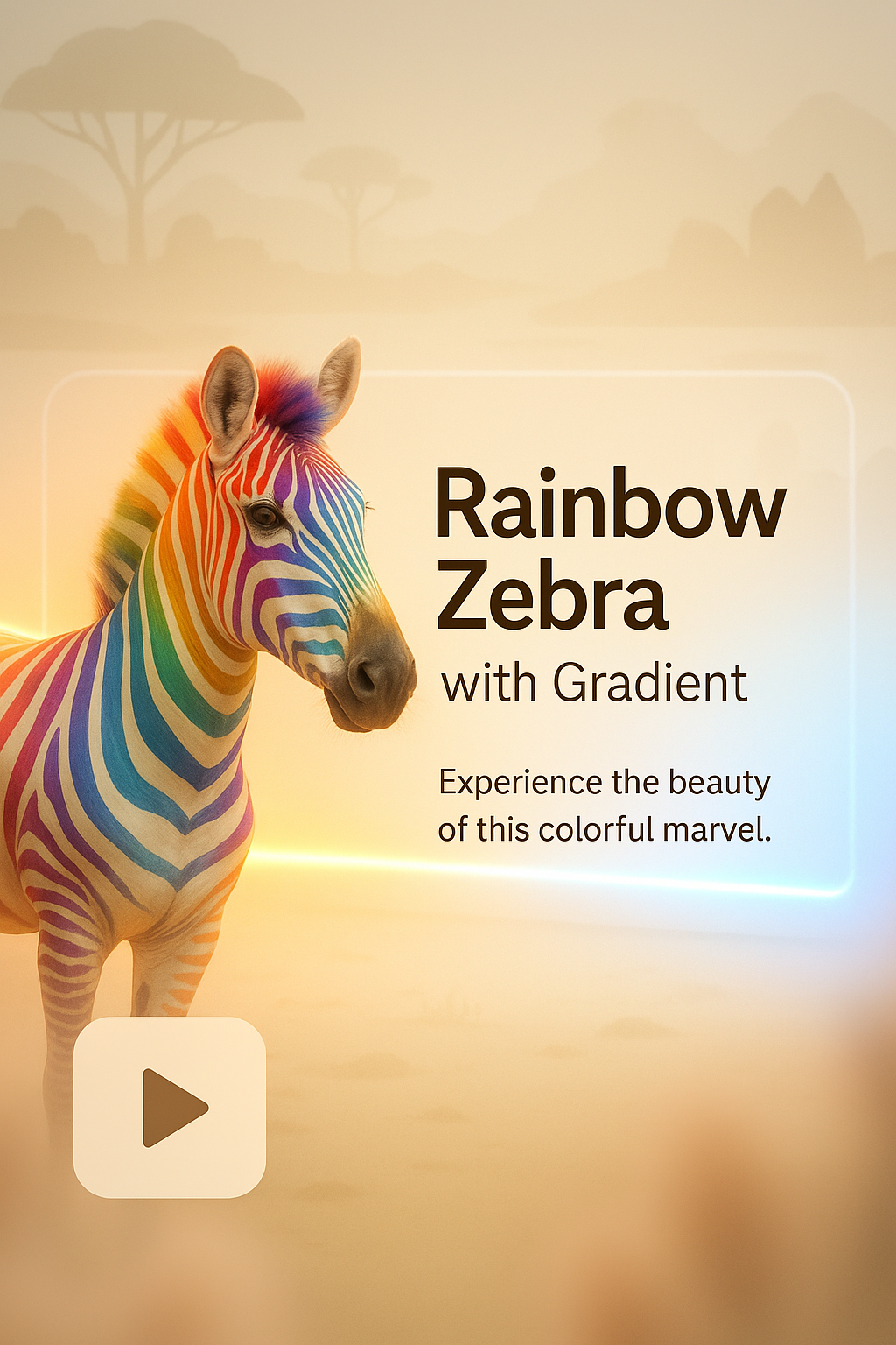 This vibrant graphic features a zebra with a rainbow gradient design, set against a soft, dreamy background. Ideal for art promotions or social media.