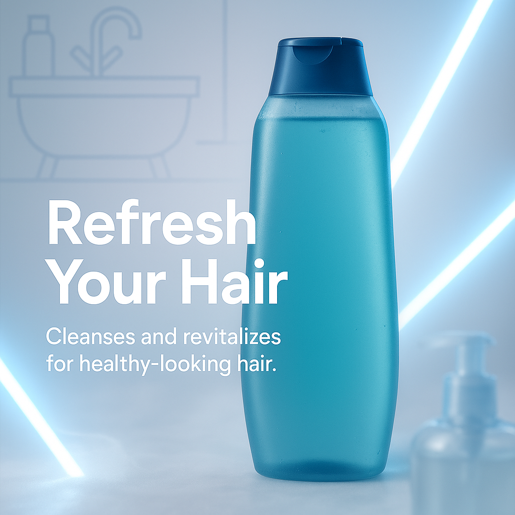 /Collection: /by davooda/Type: PNG/Promotional image featuring a shampoo bottle designed to emphasize hair revitalization. The modern and clean aesthetic targets consumers seeking effective hair care solutions.