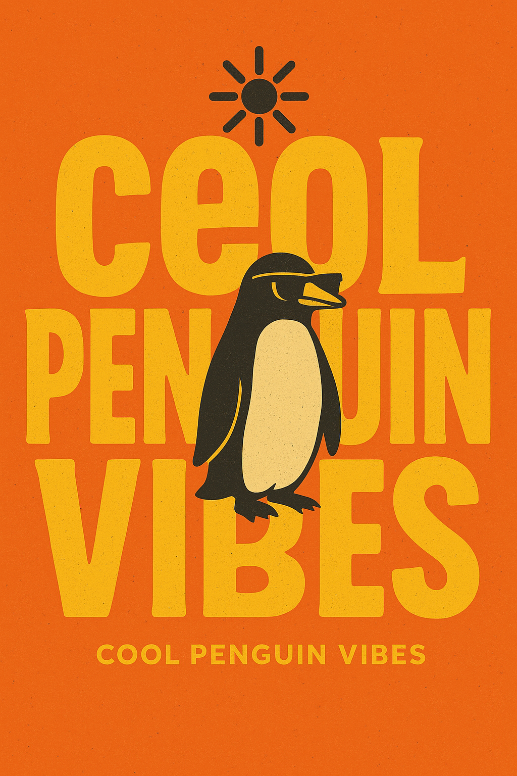 A vibrant illustration showcasing a penguin character with playful typography, ideal for casual branding or promotional materials aimed at a fun-loving audience.