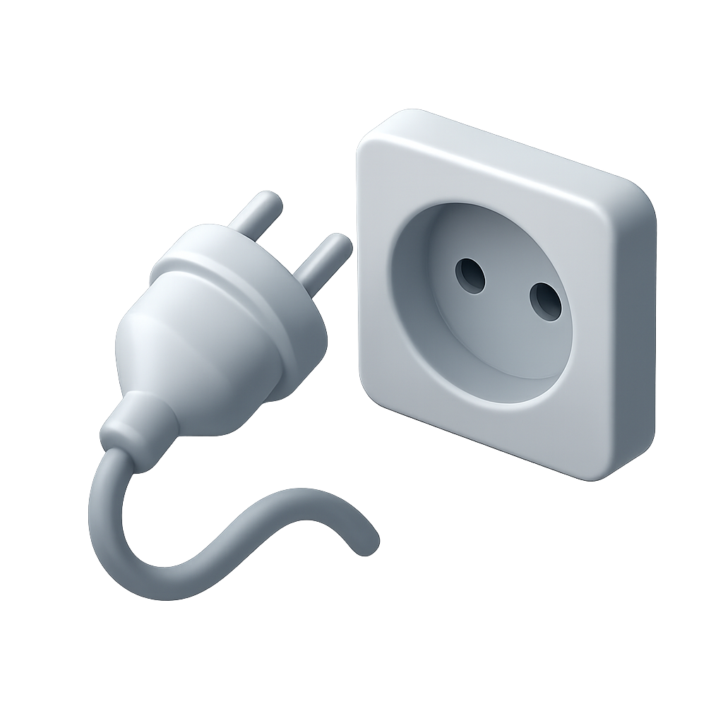 Stylized 3D Electric Plug and Socket Icon in Isometric View