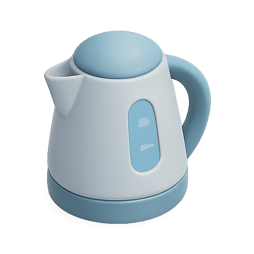 A contemporary electric kettle featuring a minimalist design with soft blue accents, ideal for kitchen appliances marketing and product showcases.