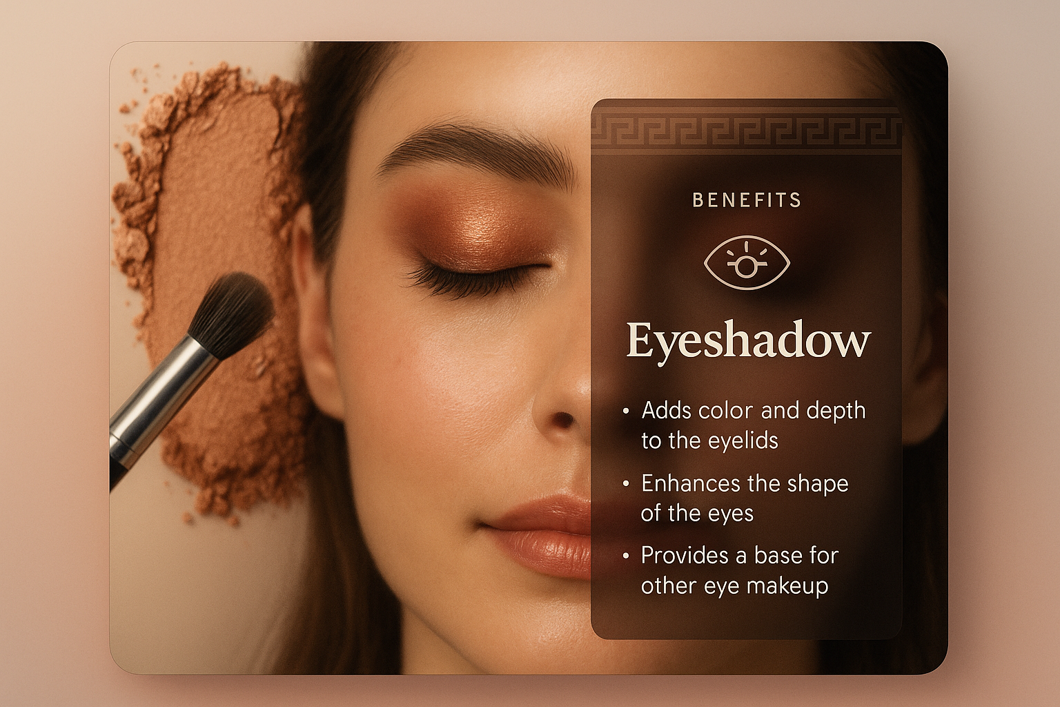 /Collection: /by davooda/Type: PNG/A visually appealing image showcasing a close-up of a woman's eye with expertly applied eyeshadow. The design features a stylish information block detailing the benefits of eyeshadow, integrated seamlessly into the composition.