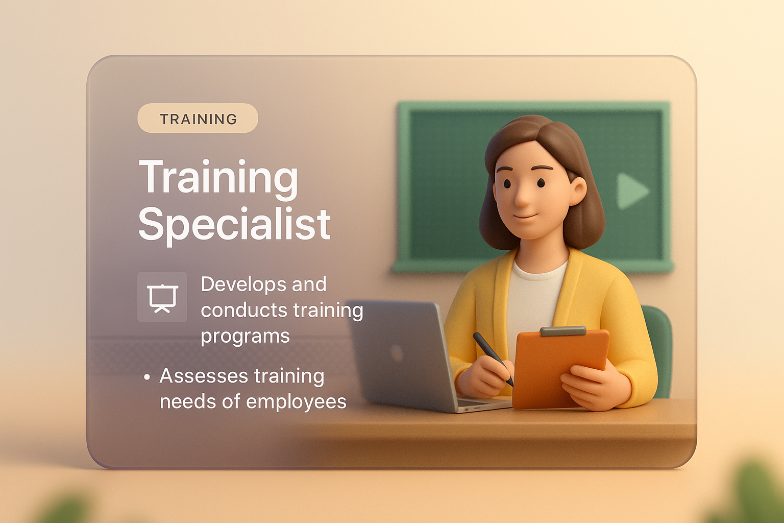 /Collection: /by davooda/Type: PNG/A bright web page design featuring a 3D illustration of a training specialist. The layout includes blocks of text, icons, and decorative elements, all seamlessly integrated.