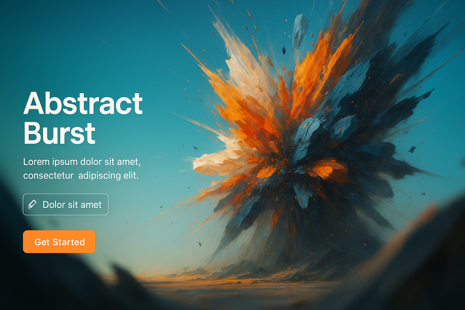 This is a visually striking abstract artwork featuring explosive colors and dynamic shapes, intended for use as a promotional graphic or digital banner.