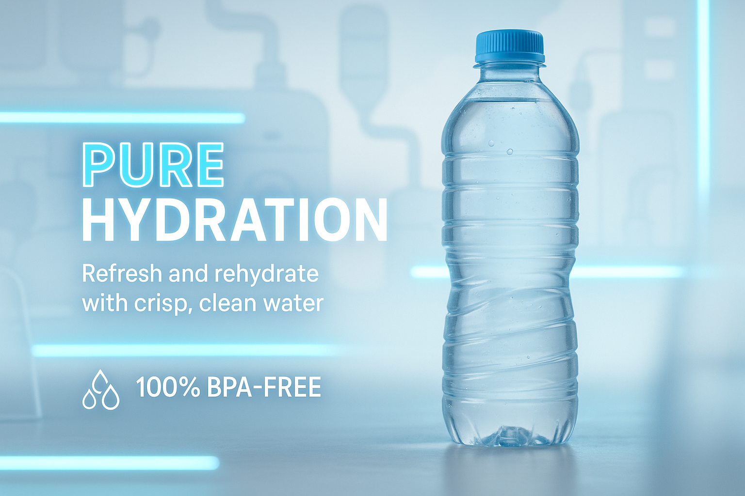 Promotional Image for Hydration Product Featuring Clear Water Bottle