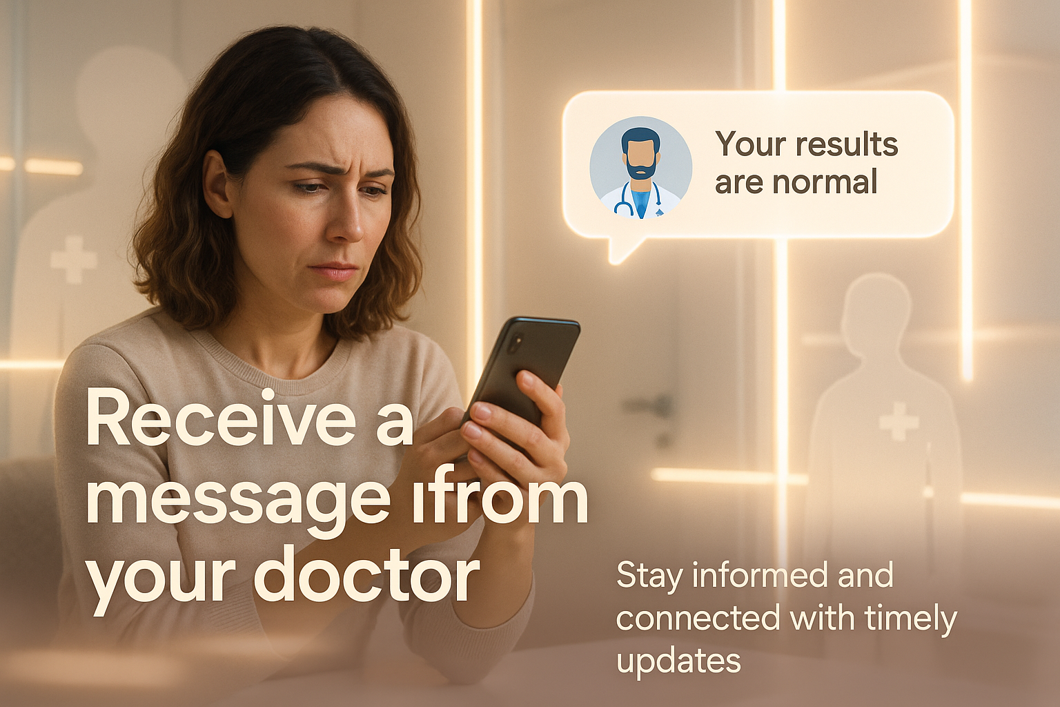 /Collection: /by davooda/Type: PNG/A modern healthcare communication graphic depicting a concerned patient receiving a message from their doctor, ideal for telemedicine or health app promotions.