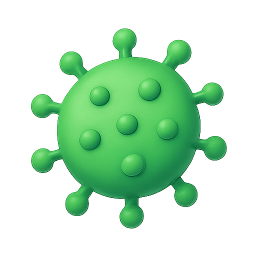 Stylized 3D illustration of a virus, featuring a bright green color and rounded protrusions, suitable for educational materials or health-related content.
