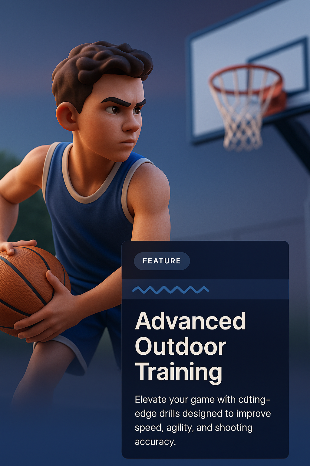 Dynamic 3D Basketball Illustration Featuring Young Player Outdoors