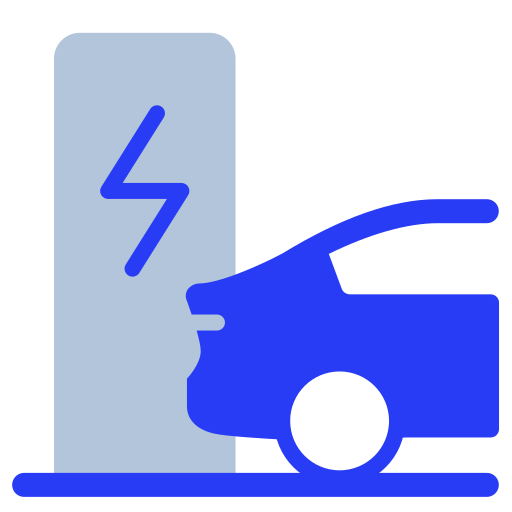 polish-blue simple icon: electric vehicle, charging station, car charging, EV charging, electric car