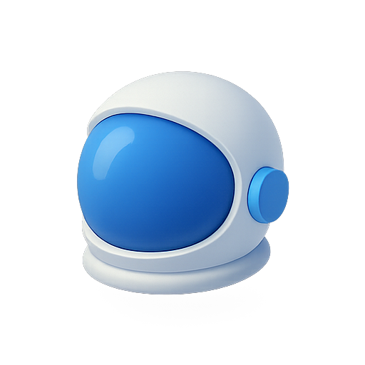 A stylized 3D illustration of a white astronaut helmet with a blue visor, showcasing a playful and modern design suitable for digital art or branding purposes.