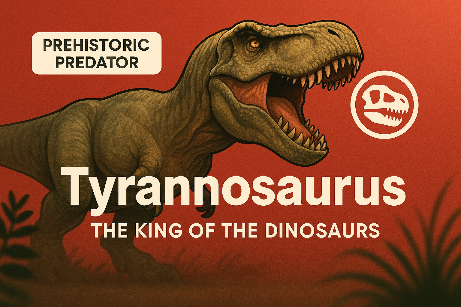 Vibrant illustration featuring Tyrannosaurus rex, highlighting its status as a prehistoric predator. Ideal for educational content about dinosaurs.