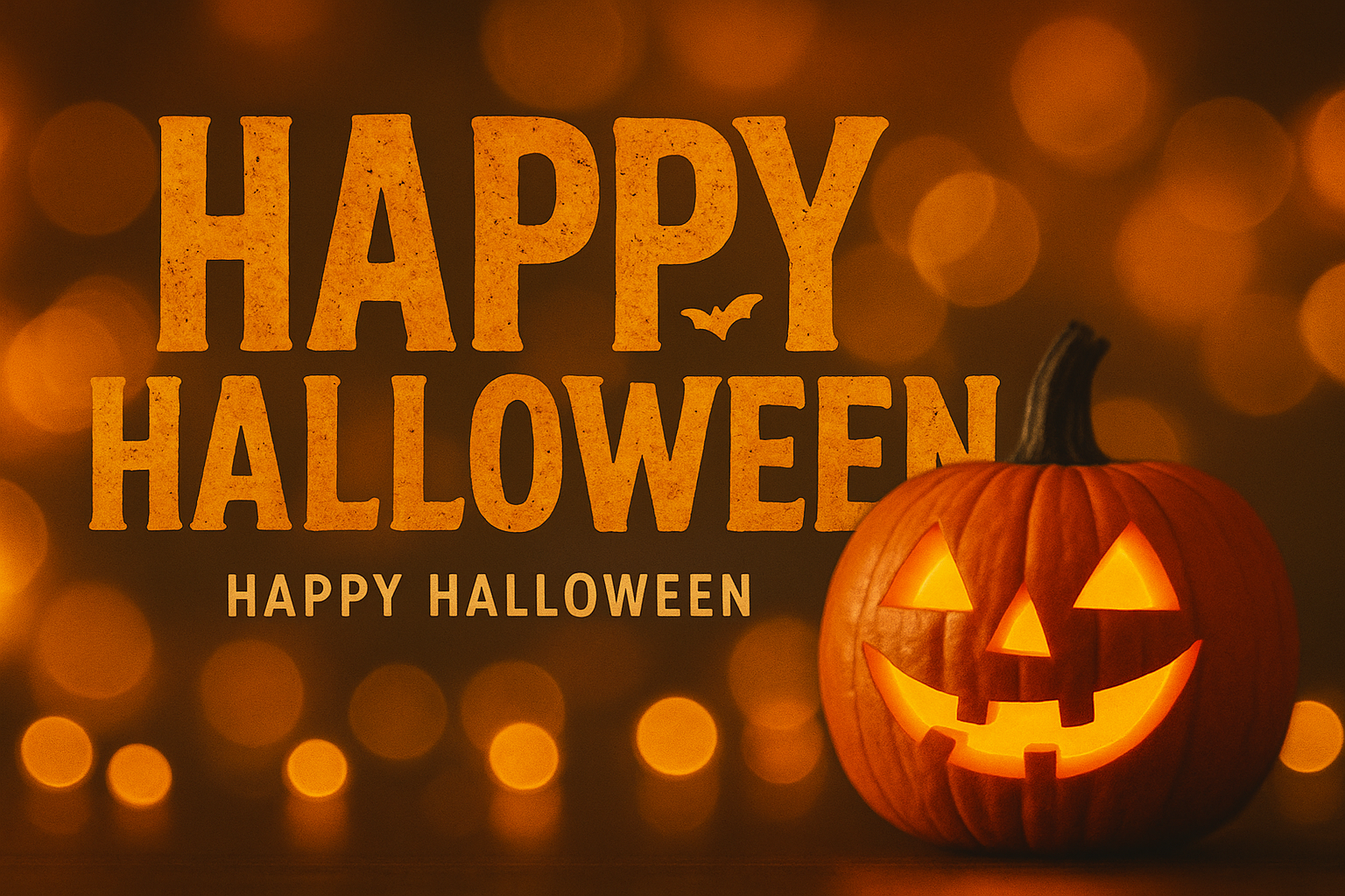 Festive Halloween Greeting Card with Pumpkin and Bokeh Background