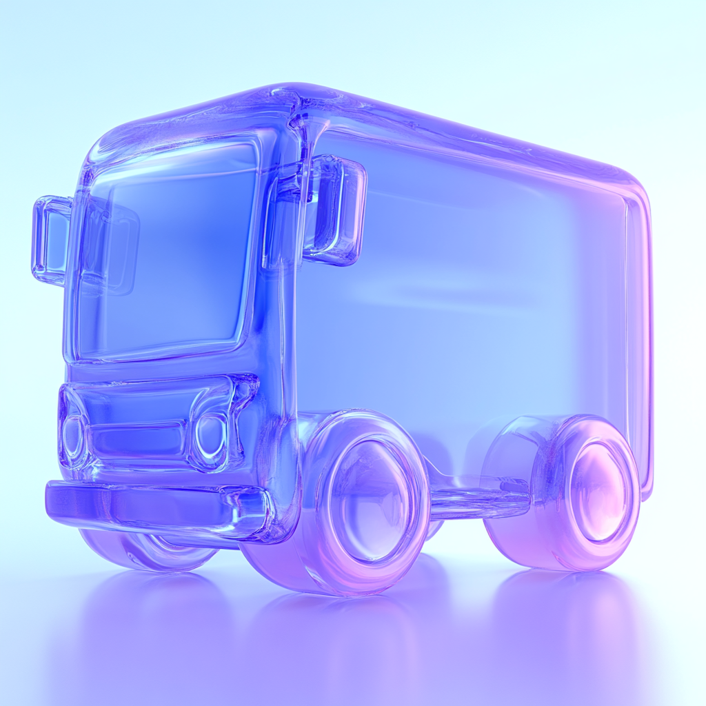 A creative representation of a transparent truck designed with a glass-like effect, featuring a gradient of blue and purple hues. Ideal for digital art or modern branding.