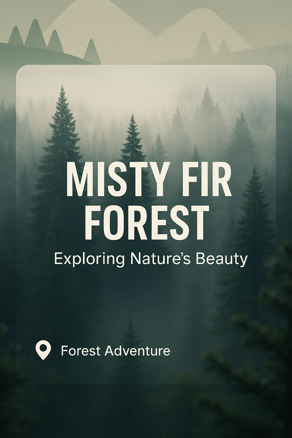 A serene promotional graphic showcasing a misty fir forest, designed to evoke a sense of adventure and exploration in nature. Ideal for travel or outdoor adventure marketing.